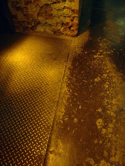 長い間人がくり返し歩いたために磨かれて、鈍く光を跳ね返すようにして静かに歴史と存在を示す石のグラウンドと、人の手になる鉄の滑り止めの鈍い光。仲介を果たすは、これもまた少し崩れかけている赤いレンガ