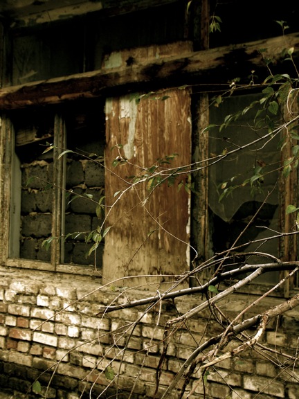 何度も色を重ねられ、それもところどころ剥がれ落ちた窓枠が、外界とは違う時間の流れに沈む内側を垣間見せている. 表裏を繋ぐ隙間と窪みが、街には無数に散らばっている