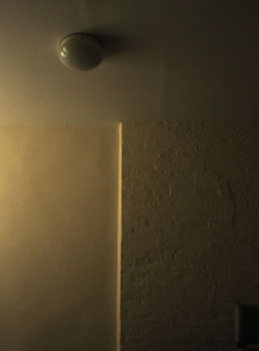 地階の中庭に面している部屋からは、殺風景で何もない、狭い中庭が見える。向かいのいくつかのアパートは長いこと改装中なのか、誰も住んでいないようで、窓にはベニヤの板が打ち付けられている。気が滅入るかのような風景なために、スクリーンをおろしたままにすることが多い。
