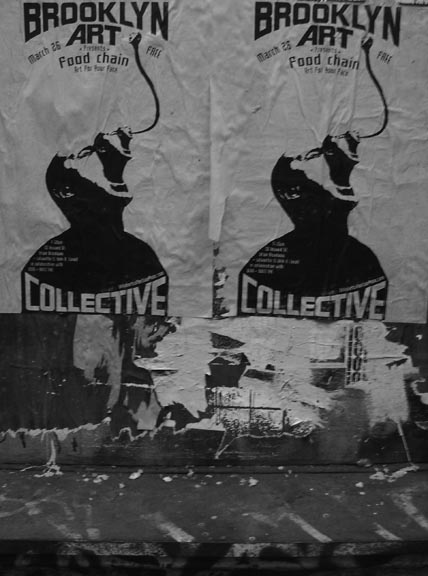2004年の共和党大会はニューヨークで開かれた。もともとニューヨークでの地盤が弱い共和党は、9/11という機会を用いて、ニューヨークへの切り込みをはかろうとしたのだ。その前後にいろいろなポスターやグラフィティ、路上への書き置きなどが街のいたる所で見られた。剥がされてもまた次のポスターメッセージがはられる。剥がされた跡すら、メッセージとなっているかのようだ。
